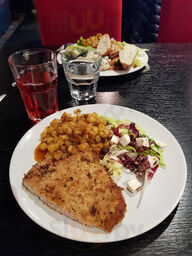 Två kvinnor kommer för att prata, äta gott o ha trevligt. Var knappt något folk när vi anlände. Servicepersonal inte intresserad av sina kunder. Ger fel maträtt till en av oss. Köttet(skulle vara ryggbiff??) Var hårt o segt.