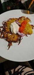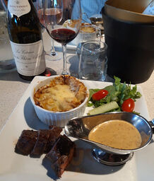Skulle bjuda barn och barnbarn på en mysig kväll men blev sååå besviken på alla plan 😔 Ledsen att jag inte läste tidigare recensioner innan. Mycket fett och senor i köttet. Vinet var katatastrof, smakade diesel. Friterade Camenberten kändes uppvärmd i mikron. Gullig personal som säkert gjorde vad de